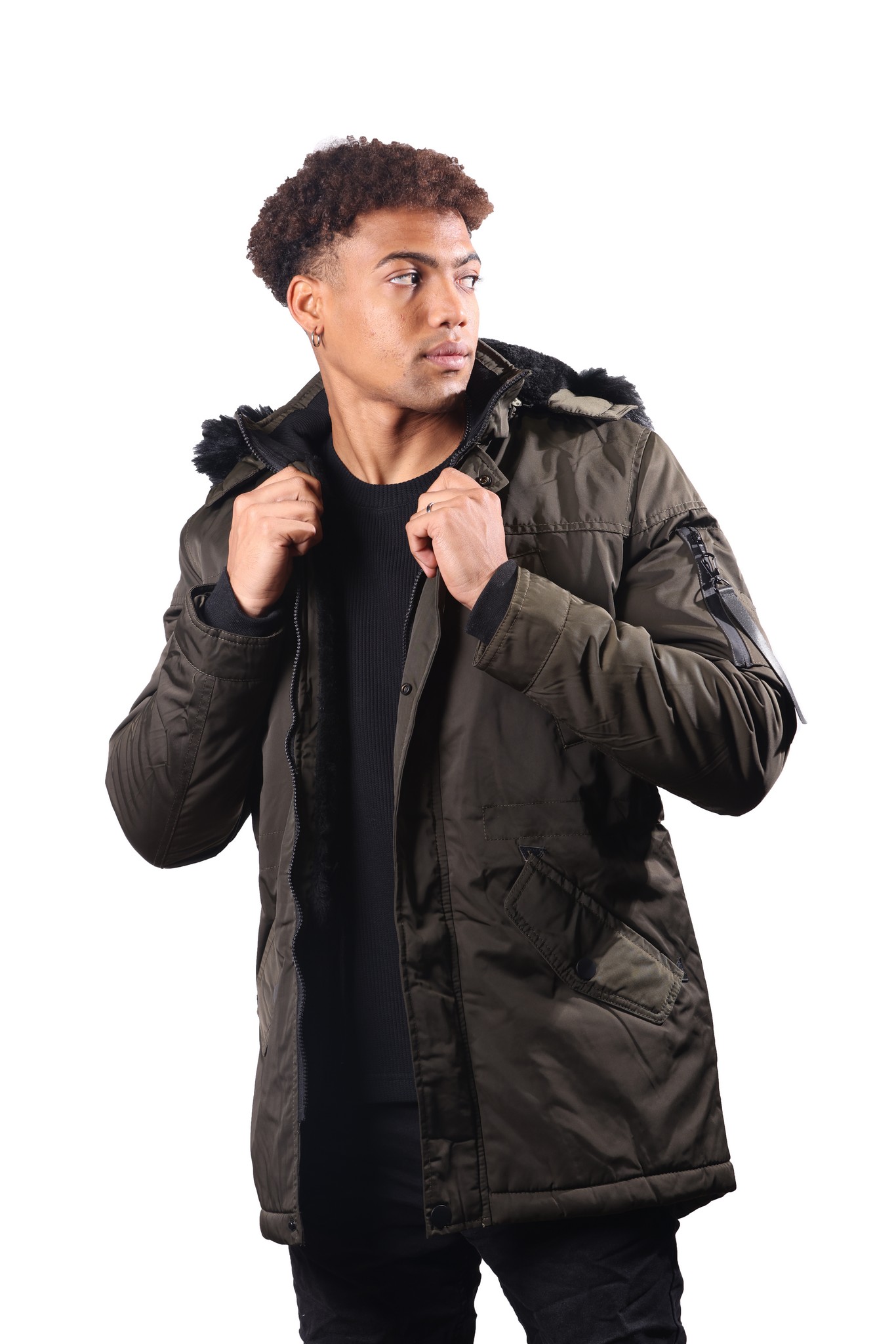 Μπουφάν χάκι με αποσπώμενη κουκούλα και εσωτερική γούνα